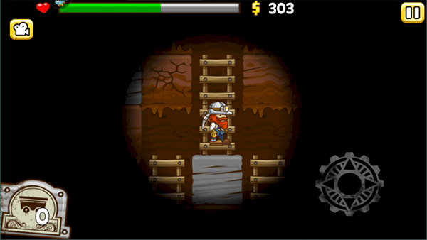 游戏采用极简操控逻辑:虚拟摇杆控制移动与挖掘,目标直指地底深处的金色矿脉与神秘白色宝石。每进入一次矿洞,视野即刻收束为手电光圈范围,黑暗成为最真实的伙伴与敌人——你必须靠记忆规划路线、预判落石轨迹、精打细算梯子库存,并在上方进度条归零前成功返程。这不是无脑挖挖挖,而是一场关于空间感知、资源管理与临场决策的硬核冒险。