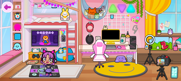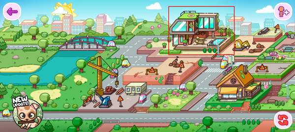 2、主界面可自由走动、点击场景物件、与卡通居民对话,触发趣味小事件;