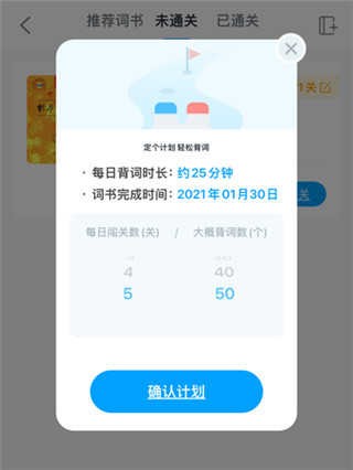 基于艾宾浩斯记忆曲线与用户行为数据,aboboo可动态生成并优化个人学习计划。首次使用即引导设置目标(如四六级/雅思/日常交流)、每日可用时长与强度偏好;后续自动推荐词书、分配闯关任务、调整复习节奏。支持灵活调整:点击「我的词书」→ 选择词书 → 编辑右侧「关卡数量」按钮,即可随时重设每日新学单词数与复习量,5步完成计划更新(附图示意),让坚持变得轻松可控。