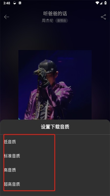 3. 根据网络环境与存储空间,自主选择音质格式(MP3/AAC/FLAC);