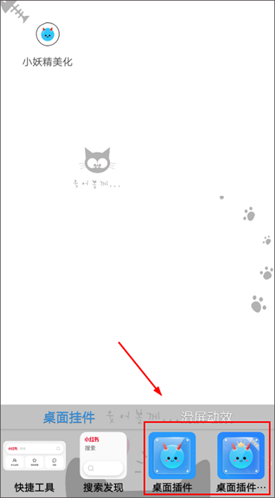 5、找到“小妖精美化”组件,拖拽至桌面任意位置,松手即完成——无需重启、不卡顿、不耗电。