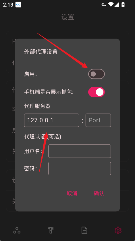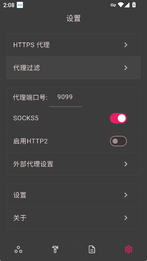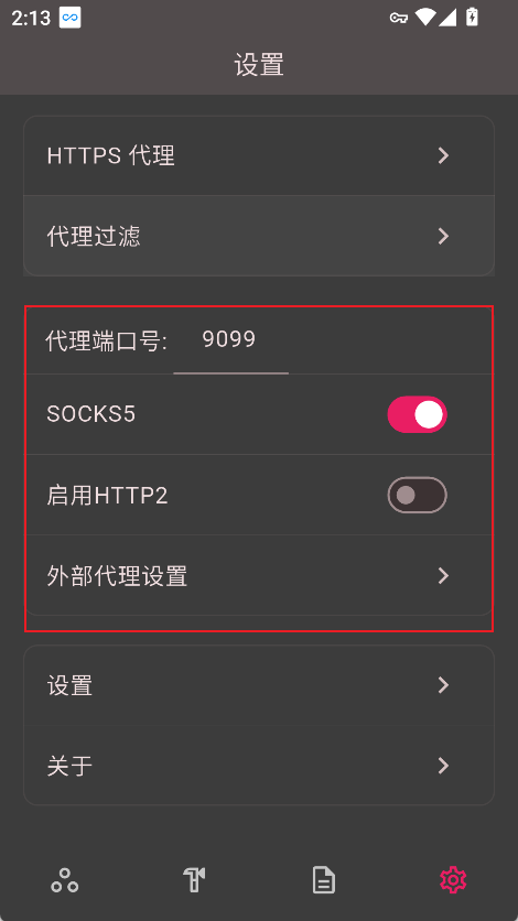 7、在设置中心还可查看并调整代理端口、日志级别、HAR 导出格式等扩展参数。