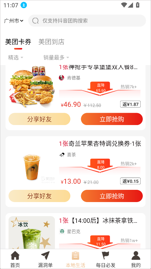 聚焦周边高频消费场景,覆盖外卖、餐饮、电影票、加油站等本地化服务,优惠直达生活刚需。