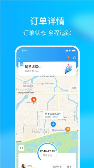 3、下单后直达「订单中心」,实时查看骑手位置、预计送达时间;