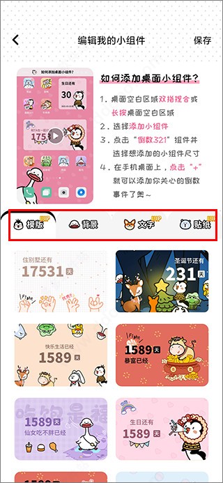 2、进入DIY编辑页,自由定制小组件样式:更换背景图、添加贴纸、调整字体与布局;