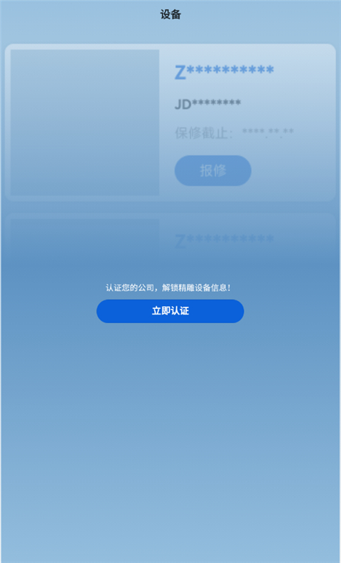 1、登录账号后进入【设备】板块,点击【立即认证】按钮启动流程。
