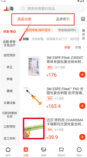 支持按品牌(如登士柏、VDW、Coltène)、按科室(牙体牙髓科/种植科/儿童齿科)、按功能(显微操作/数字化印模/感控防护)多维筛选,找品快人一步。
