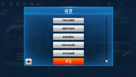 3、在语言列表中下拉并点击「中文」,确认后重启游戏即可全程中文界面,零门槛畅玩。