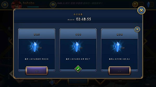 ● 任务系统:每日开放3个可重复挑战任务,完成后稳定获取宝石资源,支撑角色进阶与技能升级;