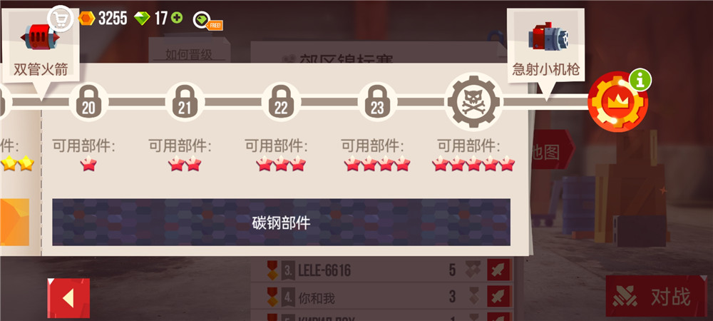 告别固定数值碾压——本作以「真实物理反馈+模块化组装」为核心:每个部件影响转向速度、火力覆盖、装甲抗性甚至特殊技能触发逻辑。完成新手任务即解锁锦标赛模式,通过节点式赛季地图逐步晋升,碳钢部件达成五颗星即可领取高人气武器【急射小机枪】;同时支持公会协作、天梯排位、随机匹配等多种对战路径,每一次改装都是战术升级的起点。