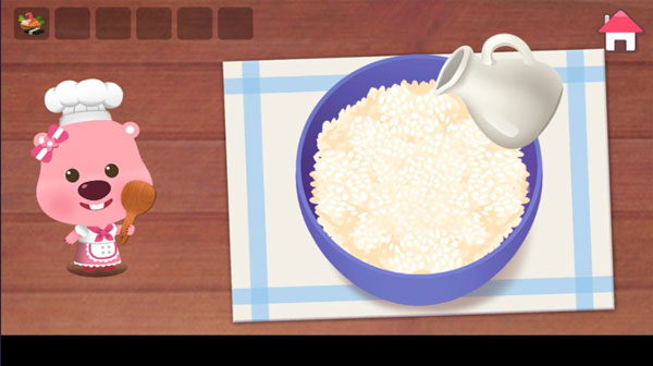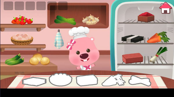 pororo cooking game是一款面向儿童的趣味烹饪模拟应用,中文名为波鲁鲁料理。玩家将化身小厨师,在Loopy的陪伴下,从挑选食材、备料加工到装盘出品,全程亲手完成30道涵盖韩式、中式、西式及各国特色小吃的美食制作。操作直观易上手:在菜单中选定目标菜品,进入厨房场景后依提示逐步完成各环节——画面生动细腻、动效流畅自然,配合可爱卡通画风与拟真音效,带来沉浸式厨房体验;每道料理交付顾客后,还能收获即时正向反馈,成就感十足。