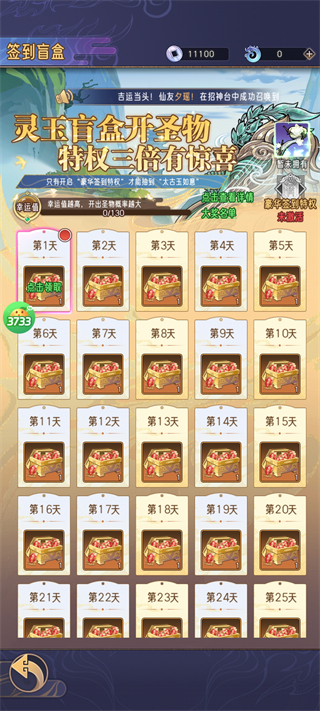 【签到盲盒】每日签到必得灵玉盲盒,开启后最高可获千元充值奖励。