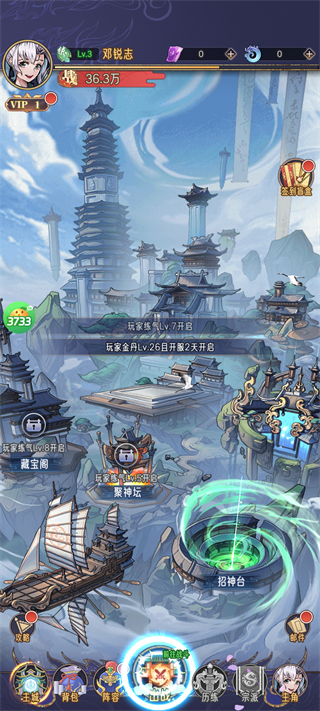 作为核心交互枢纽,主城集成【招神台】【聚神坛】等关键功能入口,承载日常任务、资源管理与养成操作全流程。