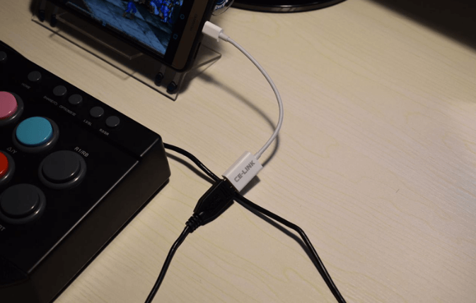 1. 使用OTG转接头将手柄连接至手机(OPPO、VIVO等品牌需提前在「设置→其他设置」中开启OTG开关)