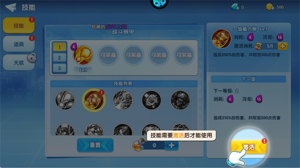 优先解锁并强化“威力弹”等主力输出技能,构建稳定高效的伤害成长主线。