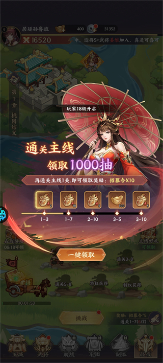 通关主线关卡可稳定领取大量招募令,是零氪及微氪玩家获取高星武将的核心资源来源,务必全程跟进、高效利用。