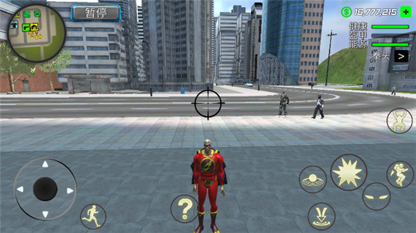 5、正式进入城市地图,通过虚拟摇杆+按键完成移动、攻击与载具操作