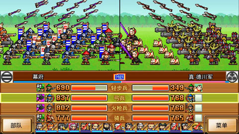 此阶段需熟练运用战术+耐性+连击组合技。将高生存角色前置,既能保存战力又能提升输出效率。注意其全兵种均为750人编制,但400左右优质骑兵即可冲散其阵型;同时击败幕府LV99可获得神装。