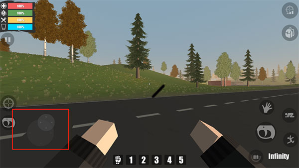 1、左下角的虚拟摇杆用于控制角色前后移动。