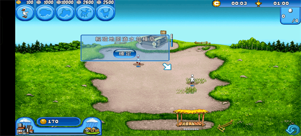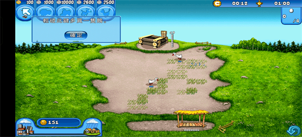 3、进入关卡后,先点击地面种植牧草,防止鹅因饥饿而死亡。
