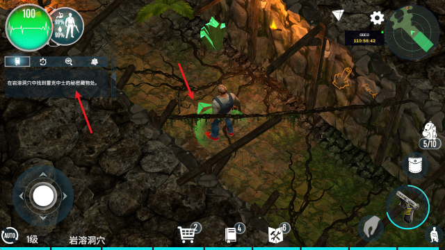 3、任务指引显示于左上角,绿色箭头会实时标注目标方向。
