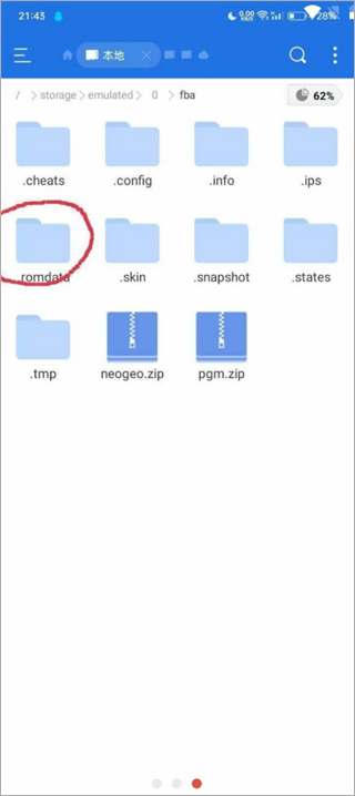 3、将找到的dat文件复制到手机存储中的 fba/.romdata 文件夹内,若无此路径请手动创建;