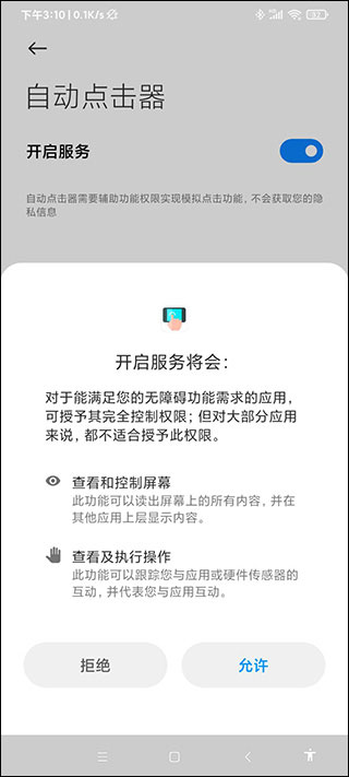 此情况多由系统级限制引起,因自动连点器依赖Accessibility Service(无障碍服务),部分机型在升级或异常退出后可能导致服务中断。通常可通过强制停止应用并重新启动、重新授权权限来恢复。若仍无效,可能需要重启设备才能恢复正常——属于Android系统的固有机制,目前尚无根本解决方案。
