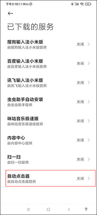 5、在服务列表中找到“自动点击器”应用,该服务初始为关闭状态,需手动开启。